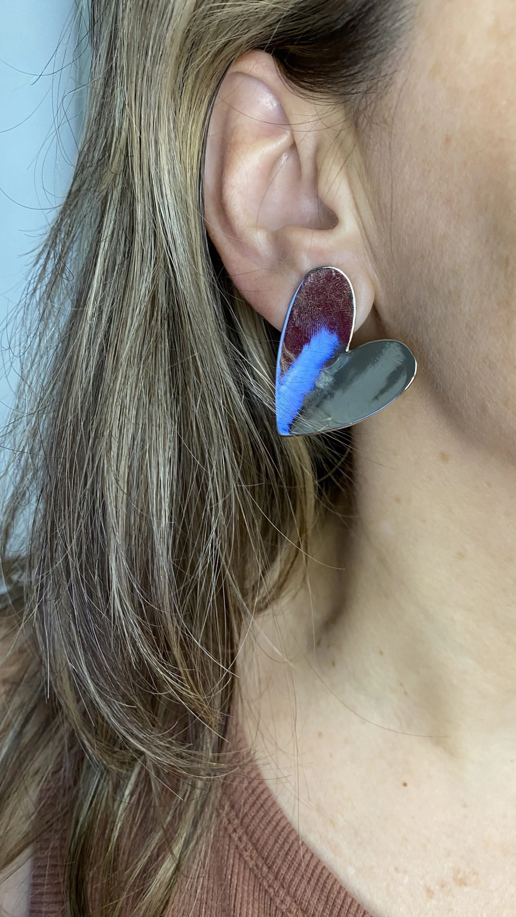 Brinco com formato coração, super leve, o formato fica de lateral.