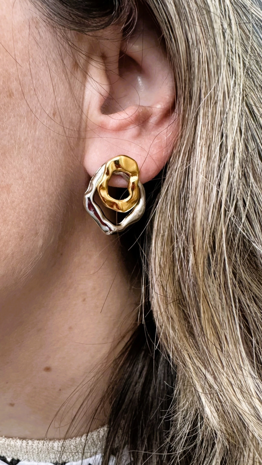 Com design orgânico e acabamento bicolor, ele pode ser usado de 3 maneiras diferentes — só dourado, só prateado ou com as duas partes combinadas.