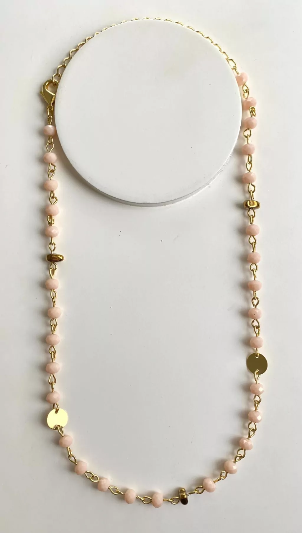 Colar com Cristais, Medalhas e Pedra Cascalho com alongador de 0,10 cm.